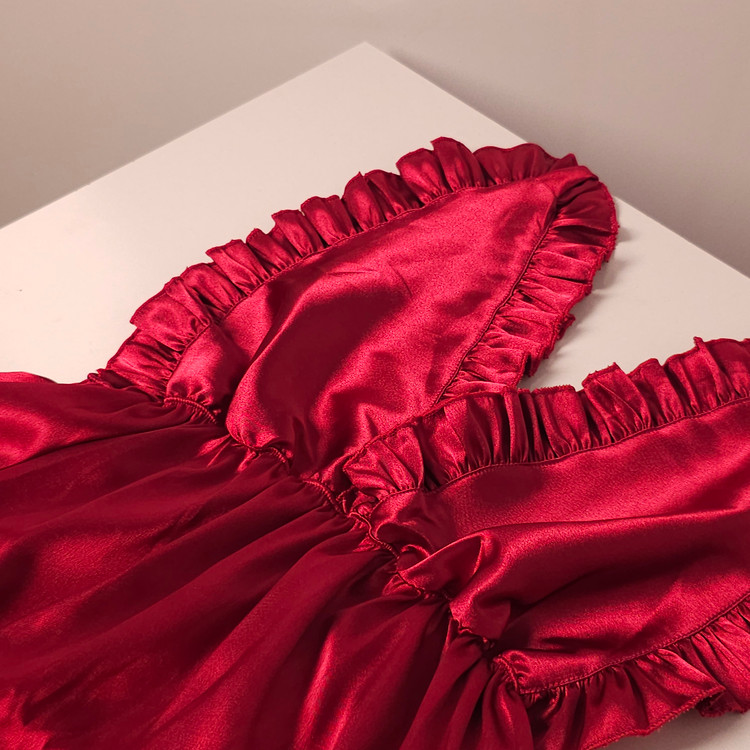 (لباس خواب ساتن ، ست فانتزی توری سوتین و شورت.)