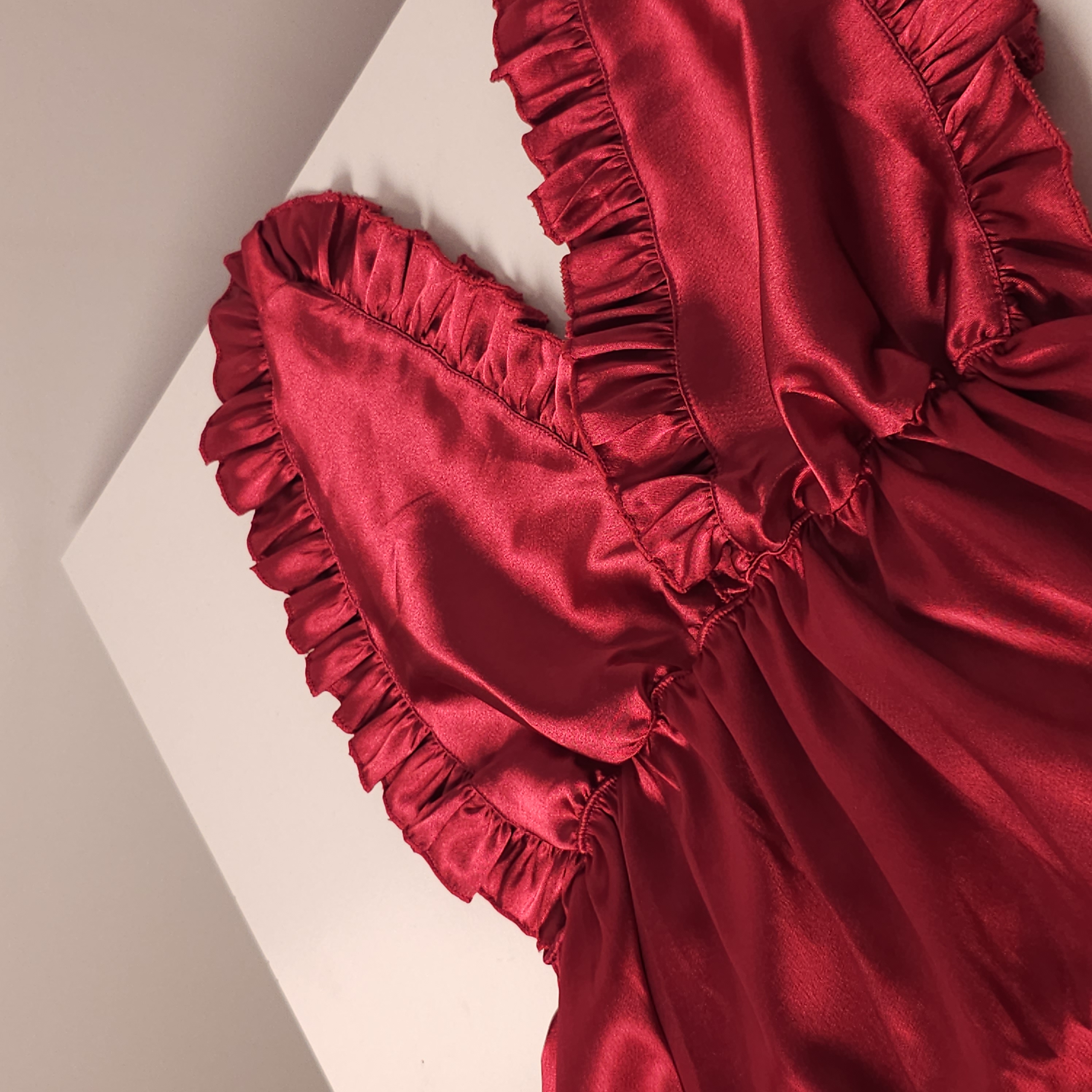(لباس خواب ساتن ، ست فانتزی توری سوتین و شورت.)